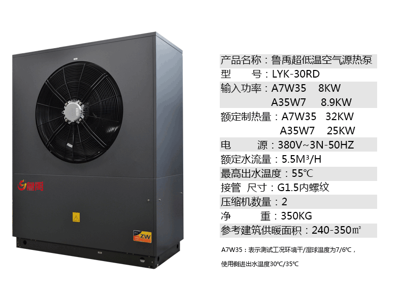 魯禹家用空氣源熱泵供暖機組由壓縮機、冷凝器、膨脹閥、蒸發器等部件組成。在室外熱能轉移過程中,每消耗1份電能,就可以為室內提供4份的熱量(根據不同運行狀態,該值也會有所不同)。