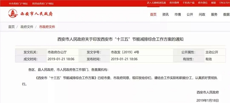 @西安市人民政府2019年1月21日西安市人民政府印發《西安市“十三五”節能減排綜合工作方案》,提出以“北方地區冬季清潔取暖試點城市”為契機,全面推進既有建筑節能改造。推進淺層地熱能、中深層地熱能、空氣熱能、工業余熱等解決建筑用能需求,新建建筑利用可再生能源供熱面積達300萬平方米。