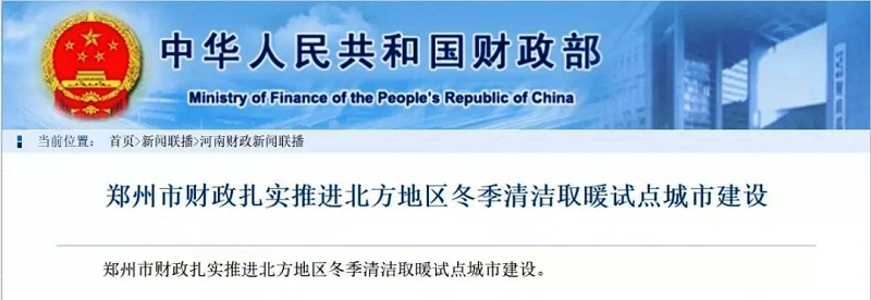 鄭州市財政扎實推進北方地區冬季清潔取暖試點城市建設