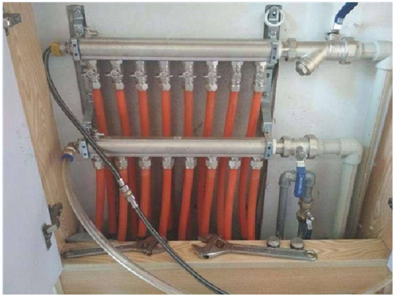 這種地暖清洗方法不需藥劑,不拆卸地暖管,清洗較徹底。其獨特的清洗原理可同時清洗地暖分集水器主管路及閥門,避免長期結垢導致閥門堵塞現象。這種清洗方法的不足之處在于,施工時受空間限制,特別是某些用戶的地暖分集水器安裝在隱蔽處,且分集水器兩端與墻壁距離過近,從而使施工更加困難。