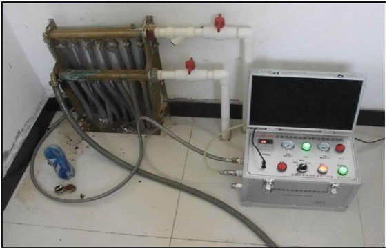 射彈式清洗是利用清洗彈與管壁間的摩擦力清除附著在管壁上的黏泥,不損傷地暖管道,清洗較徹底。這種清洗方法的不足之處在于,需拆卸地暖管。如果地下管路有接頭,施工非常不便且容易使清洗彈卡在管路內。另外,還可能對原分集水器、閥門等相關的部位造成二次損壞。
