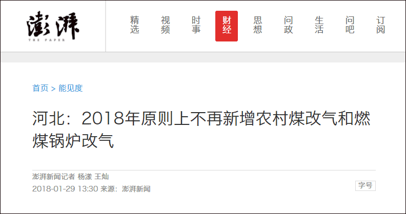 1月29日獲悉,河北省發改委已于近日下發文件,要求“除2017年結轉的農村煤改氣任務外,2018年原則上不再新增農村煤改氣和燃煤鍋爐改氣”。