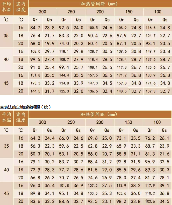 查表法確定地暖管間距