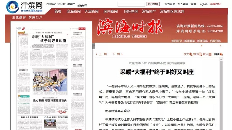 天津濱海時報:空氣源熱泵采暖叫好又叫座
