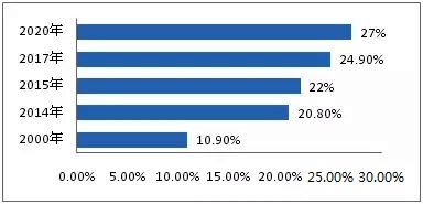 圖2 我國電能占終端能源消費比重