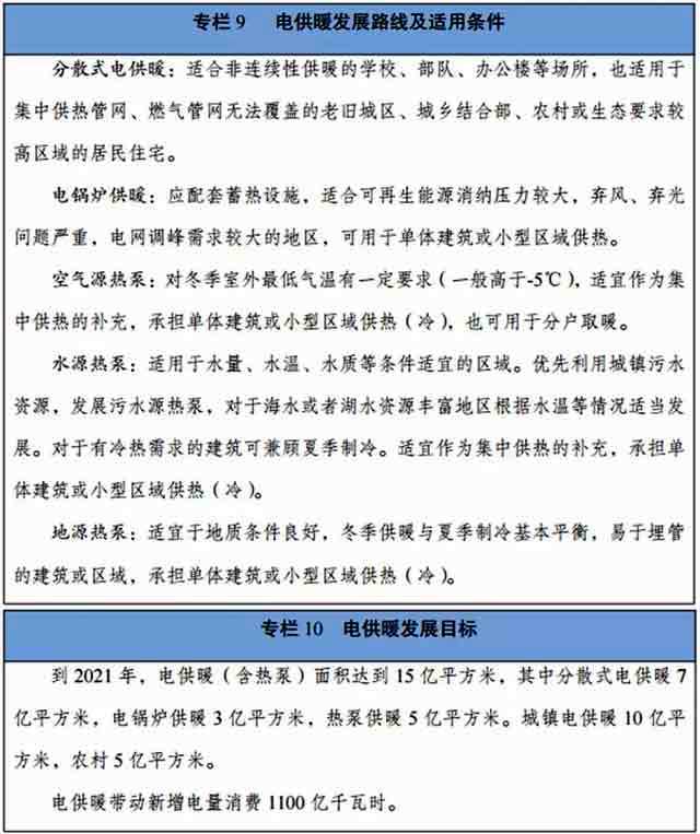 根據(jù)2017年12月5日,國家發(fā)展改革委等十部門聯(lián)合印發(fā)的《北方地區(qū)冬季清潔取暖規(guī)劃(2017-2021年)》,明確指出電供暖是利用電力,使用電鍋爐等集中式供暖設(shè)施或分散式電供暖設(shè)施,以及各類電驅(qū)動熱泵,向用戶供暖的方式,布置和運行方式靈活,有利于提高電能占終端能源消費的比重。結(jié)合采暖區(qū)域的熱負(fù)荷特性、環(huán)保生態(tài)要求、電力資源、電網(wǎng)支撐能力等因素,因地制宜發(fā)展電供暖。