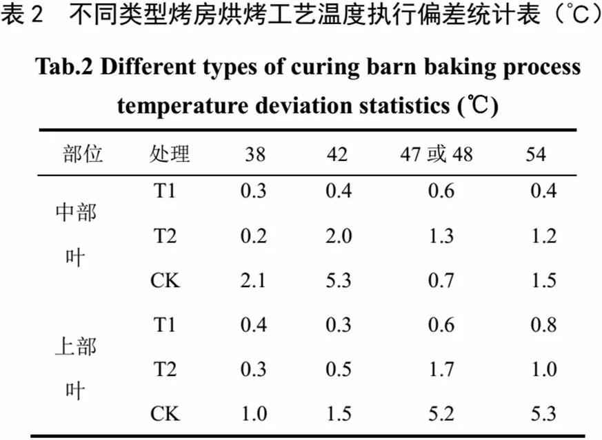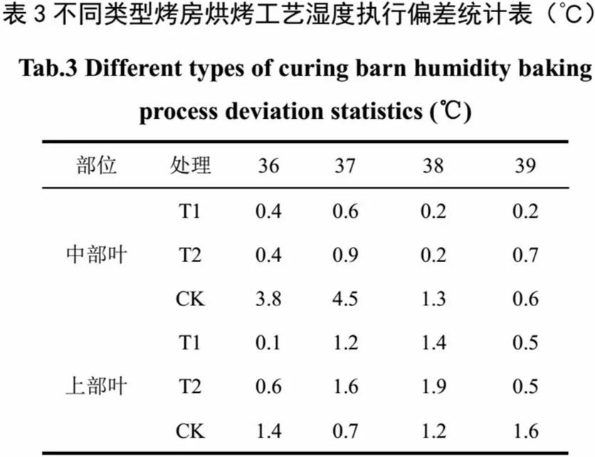 在溫度達到38℃、42℃、47℃(中部葉)和48℃(上部葉)、54℃時,測定實際溫濕度與目標溫濕度的偏差。