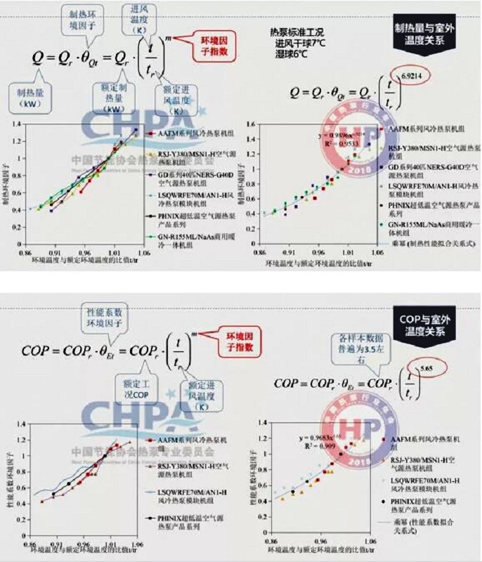 在這個因子的確定上,我們對國內有影響的廠家生產的熱泵機組進行了數學上面的處理;其環境因子的值在一般情況下,指數是5.65,建立了這個數學模型。同時,對于除霜的問題,結霜是逐步的增厚,厚到一定的程度影響其換熱。為此,我們要求一定要通過除霜進行試驗。此時,除霜是消耗其它的能量。
