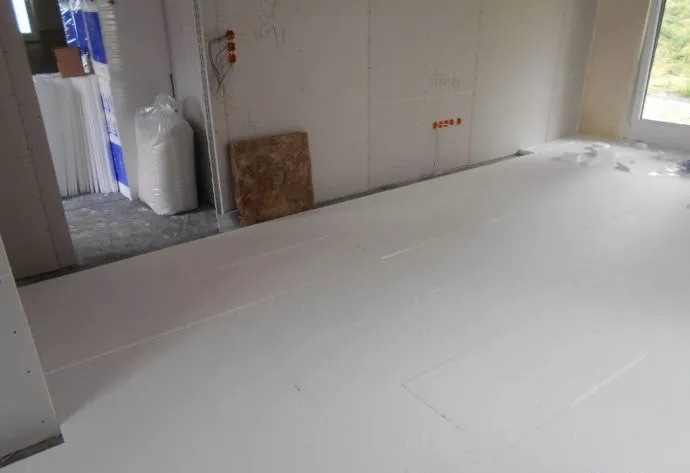 地暖地面構造中的砂漿面層,已經(jīng)澆注完成