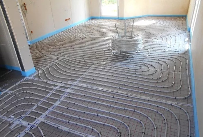 白色的地暖管線,布設施工現(xiàn)場一瞥01