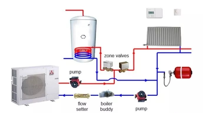 日本三菱(MITSUBISHI)空氣源熱泵系統(tǒng)——供暖系統(tǒng),示意圖