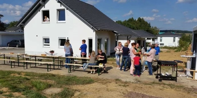 最后附上幾張正在進行一項德國民間風俗“封頂儀式”圖片,跟中國人蓋房風俗很像,房子封頂邀請親朋好友、左鄰右舍吃飯慶祝。