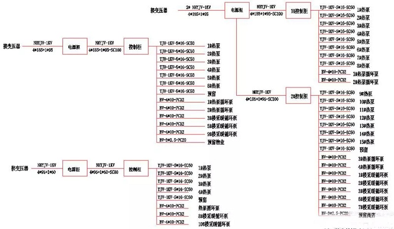 本小區為配合煤改空氣源熱泵技改項目,應該增設一個變壓器,提供空氣源熱泵所需要的電源及配電柜及控制柜,變壓器及敷設的電纜溝、配電及控制柜見下圖。